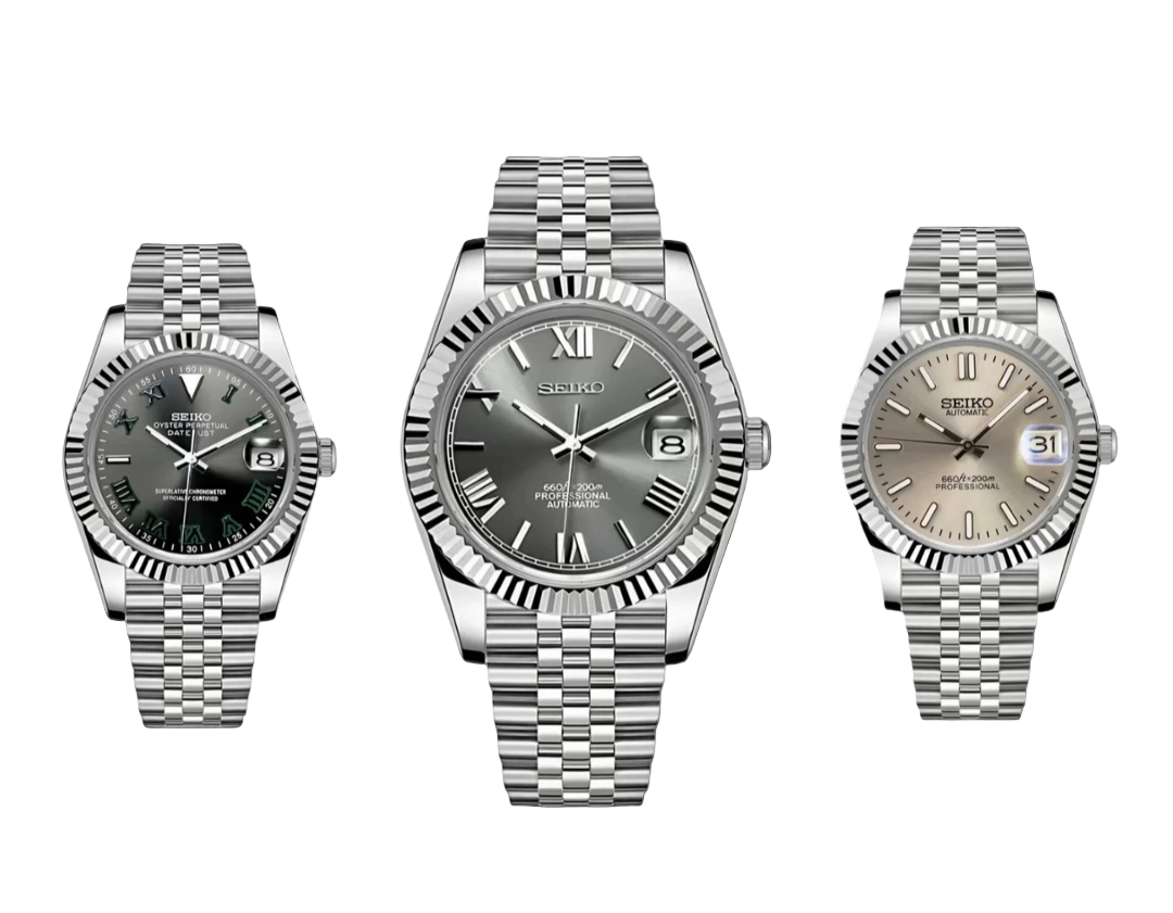 Seiko Mods are fully customizable watches made from genuine Seiko parts, carefully assembled by skilled watchmakers. Each piece — from the dial and hands to the bezel and case — is meticulously crafted to create a truly unique timepiece.