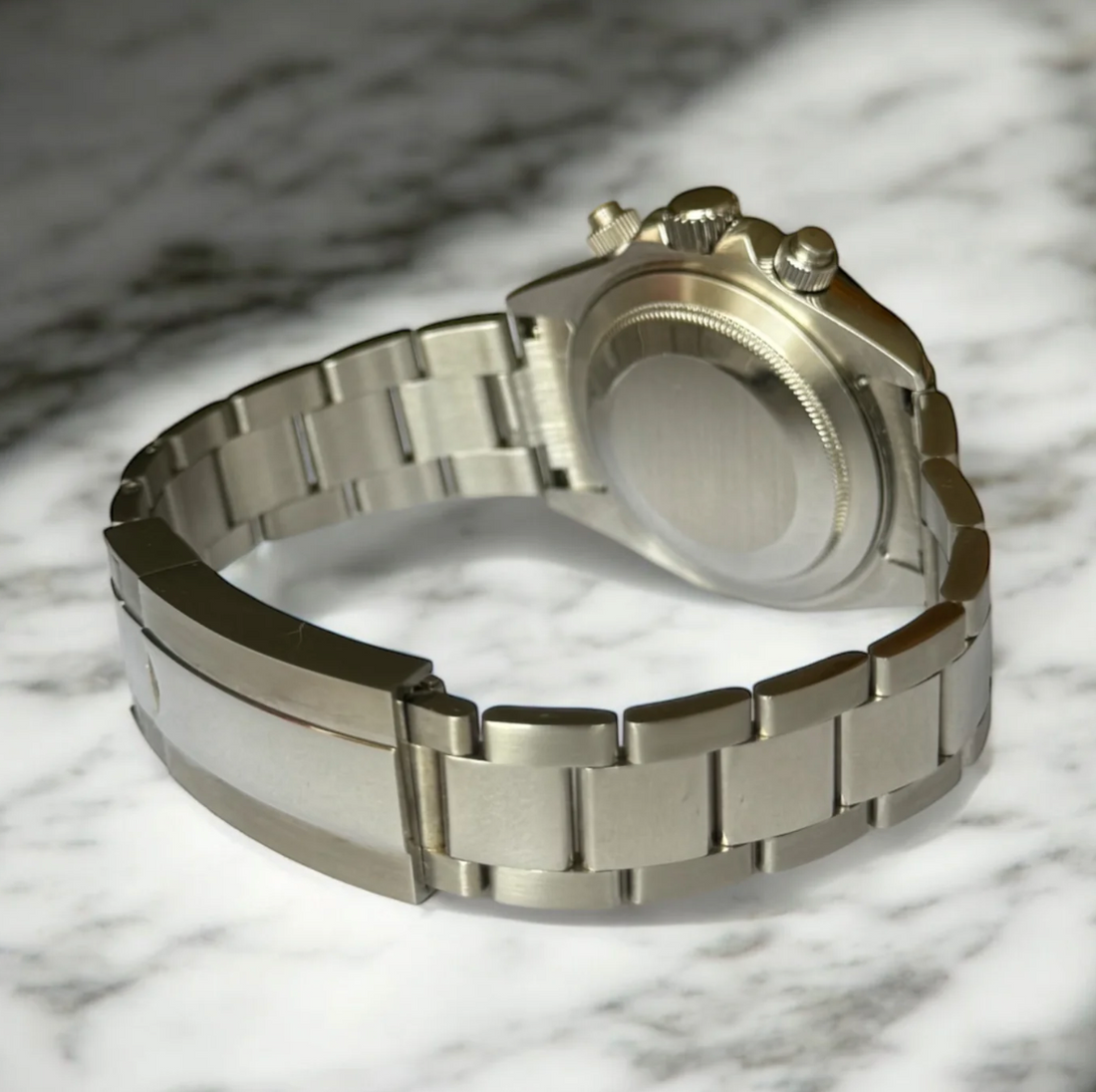 Our Seiko Mod Daytona embodies speed and precision. Inspired by legendary chronographs, this watch combines elegance and sportiness for those who live every moment with passion.